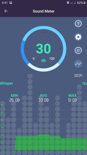 DB Meter atau Bunyi Mengukur graf Paparan untuk pemahaman yang lebih baik tentang bunyi persekitaran atau bunyi yang terlalu bising atau berbisik atau bunyi bising dan untuk pengukuran bunyi yang mudah.