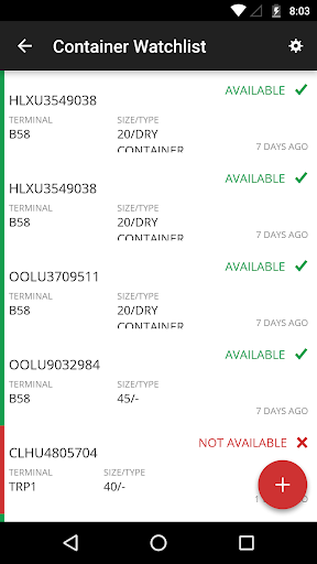 Check the status of import containers across marine terminals.