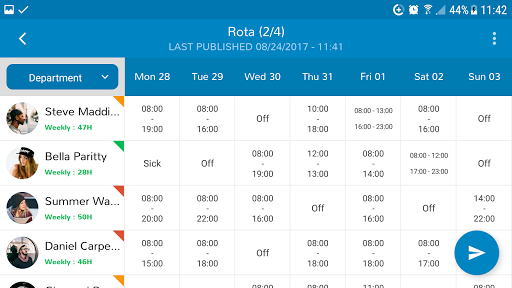 Simpan jari anda dengan tegas pada nadi. Pantau jam kerja pasukan anda, berkongsi peralihan dengan adil antara kakitangan dan pastikan cuti dan ketidakhadiran dengan hanya satu klik.