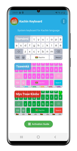 Papan kekunci Kachin untuk menulis dalam bahasa tulisan asal Kachin yang diperkenalkan oleh Rev. Ola Hanson.Sokongan Android 4.1 (Tahap API 16). Lawati https://www.learnkachin.com/ untuk maklumat lanjut.