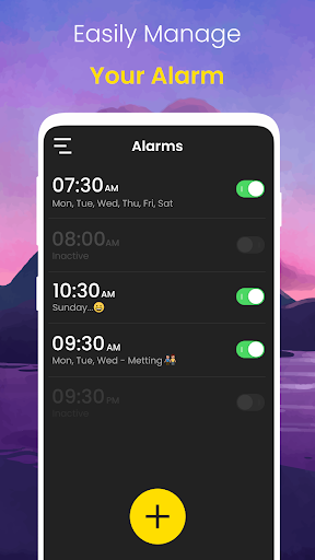 Pilih dari tema berjenama yang bergaya untuk jam, buat senarai main bangun anda sendiri, dan nikmati sokongan penggera latar belakang: Penggera akan berdering walaupun aplikasi tidak berjalan.