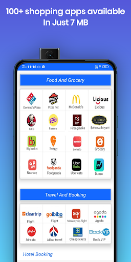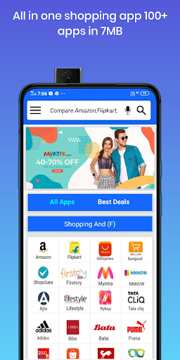 all in one shopping app is the best shopping app in India forever. which gives you all deals and offers information. and provides 200+ shopping apps in just 7 MB, all in one shopping saves lot of time and mobile space. in this app there are 200+ shopping app which work fast and smooth. if you download all app individual its take more then 5 GB. all in one shopping app is free and comfortable for all mobiles to use. it take less space and gives you batter shopping experience.