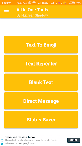All Smart Tools is the most useful and handy application which offers 5 tools like Text To Emoji , Text Repeater , Blank Text , Direct Message , Status Saver etc..