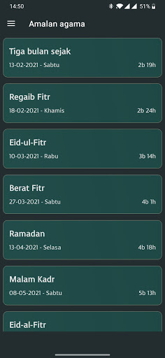 • Duas - banyak duas yang berbeza seperti duas petang dan pagi untuk dipilih.