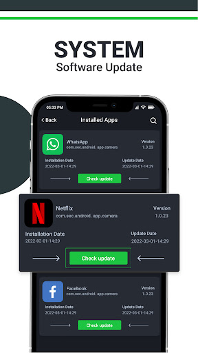 🤳 Updates all apps phonesoftware notifications to keep you updated on the software. This up-date will be helpful as an update system checker for android applications and will up date the software for new functions, features, and better performance. This is an update checker for android apps that effectively updates your 📲 mobile for free of cost to actualizaciones your mobile sysyem-software to the latest version of the phone updater app using wi-fi or mobile data connection.