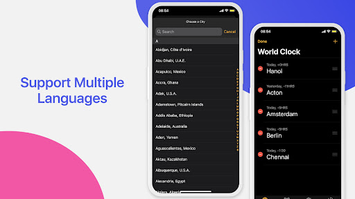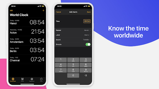 5. Jam dunia. Lihat waktu tempatan di zon waktu yang berbeza di seluruh dunia.