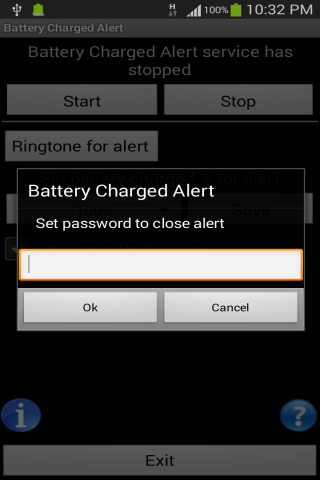 Untuk PPL yang masih paranoid tentang mengecas bateri telefon pintar mereka (yang sangat tidak mungkin), aplikasi ini membolehkan anda mencetuskan penggera nada dering apabila mengatakan bateri mencapai 50% -100%. Ini memberi isyarat kepada anda apabila pertuduhan selesai.