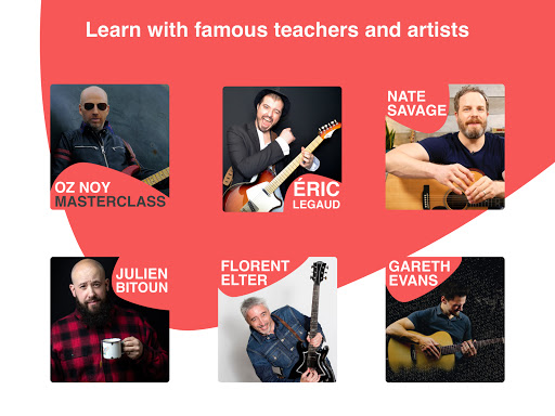 Ketahui cara bermain lagu kegemaran anda di gitar dengan skor interaktif yang disegerakkan dengan video pelbagai sudut. Ambil pelajaran dan masterclass dari gitar terkenal seperti Oz Noy, Gareth Evans, Nate Savage, dan banyak lagi.