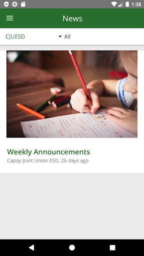 Aplikasi rasmi untuk Capay Elementary membolehkan pengguna mengakses akses kepada berita terkini, pengumuman dan kalendar acara.Sesuaikan aplikasi untuk memaparkan maklumat yang berkaitan dengan kampus tertentu dan untuk menerima pemberitahuan penting dari Daerah.Pengguna juga boleh mengakses direktori fakulti dan kakitangan daerah, melihat menu makan, mencari lokasi acara daerah, kitar hubungan dan jabatan, mengikut skor dan kemas kini olahraga, dan banyak lagi.