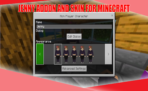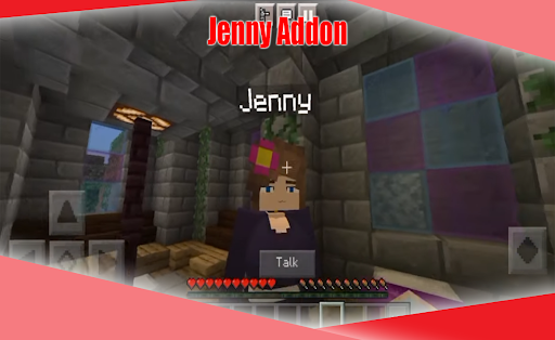 Jenny Addon untuk MCPE adalah aplikasi yang membolehkan anda memasang Jenny dalam permainan Minecraft Pocket Edition.Aplikasi ini akan menjadikannya mudah dan mudah dengan hanya beberapa klik.