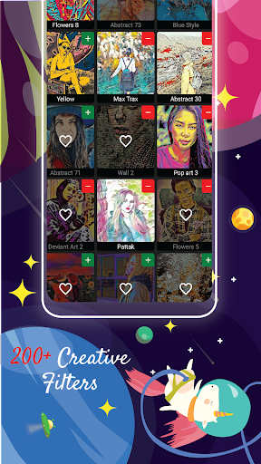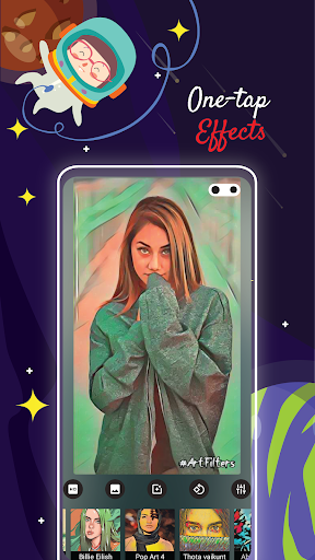 - Penapis seni menyediakan pelbagai penapis yang unik yang terdiri daripada penapis seni, artis, kesan kartun, gaya lakaran, Dengan bangga dibentangkan kepada anda oleh artis, pelukis, kartunis, jurugambar dan peminat seni. Ini menjadikan foto anda memberi perhatian perhatian kepada platform sosial untuk mendapatkan lebih banyak pertunangan.