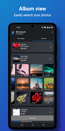 Shotcom juga mempunyai pandangan album yang menjadikannya mudah untuk mencari dan menguruskan imej anda.Anda boleh menyusun imej anda mengikut tarikh, nama, atau saiz, dan pratontonnya sebelum memampatkan.Ini menjadikannya mudah untuk mencari imej yang anda mahu memampatkan dan menjimatkan masa.Pilihan saiz fail tersuai amat berguna untuk memampatkan imej dan foto untuk borang yang memerlukan imej saiz fail yang rendah.Anda boleh menyesuaikan tetapan mampatan untuk mendapatkan saiz fail, kualiti, dan resolusi yang dikehendaki untuk imej anda.Untuk memuat naik lebih cepat, dan meningkatkan kualiti keseluruhan foto dan imej mereka.