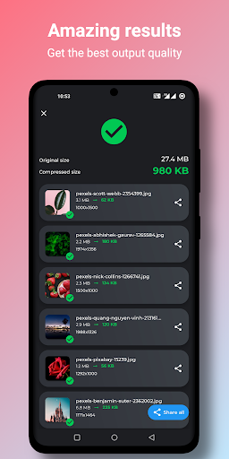 Shotcom adalah alat pemampat imej lite yang tidak memerlukan terlalu banyak storan anda dan mendapat enjin pemampatan foto yang kuat yang menjamin kualiti tinggi dan output HD.Ia juga boleh berfungsi dalam mod luar talian, oleh itu anda tidak perlu bimbang tentang penggunaan data internet anda.