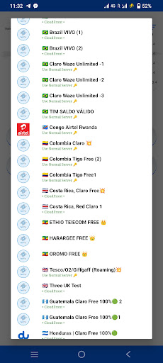 Semua pelayan di aplikasinya bebas untuk digunakan tanpa sebarang caj, anda boleh mengklik bendera dan menukar pelayan seperti yang anda mahukan.