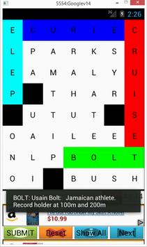 This is a fun and exciting app in which the the last name of famous people have been arranged randomly and are "hidden" in a grid going in many directions, and your objective is find these people. When you discover a person successfully, the app tells you more about the person. It also keeps track of your score in terms how many people you were able to discover in the puzzle