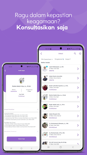 * Ruang Ngaji, sebuah fitur yang memungkinkan user untuk memesan ustaz sesuai waktu dan kebutuhannya.