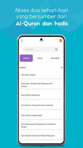 * Doa, memberikan kemudahan dalam mengakses doa sesuai kebutuhan sehari-hari;