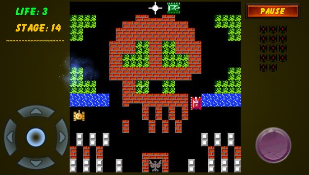 You, controlling a tank, must destroy enemy tanks in each level, which enter the playfield from the top of the screen. The enemy tanks attempt to destroy the player's base, as well as the human tank itself.