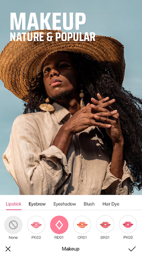 Professional makeup features. Variety of makeup options right before your eyes. Choose your favorite lipstick colors for your lips, select a new eye color, add blush, change your skin tone or add foundation smooth your skin with a few taps.