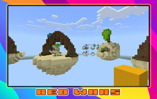 Salah satu keupayaan yang paling menarik peta ini adalah pulau-pulau terapung di mana anda boleh membuat pertempuran dengan pemain lain. Perkara ini akan berfungsi bukan sahaja pada pelayan. Peraturannya sangat mudah. Setiap pemain mempunyai katil dan mesti melindunginya dari permainan lain selepas malam itu datang. Peta perang katil ini untuk MCPE adalah contoh yang baik tentang bagaimana peta survival boleh kelihatan seperti. Kerana pemenang mesti terus hidup sebanyak yang dia boleh.