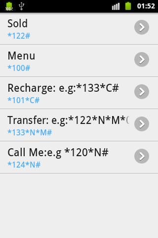 operators. You are no longer required to learn by heart all the USSD code (* 120 # .....), you just have to launch the application and for just the first time you