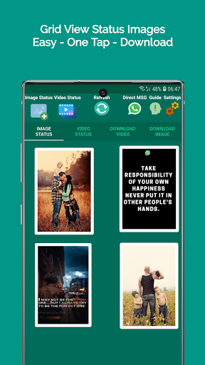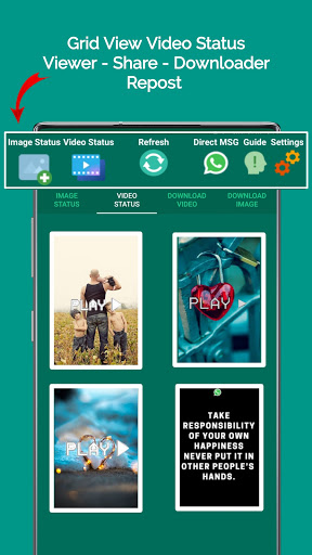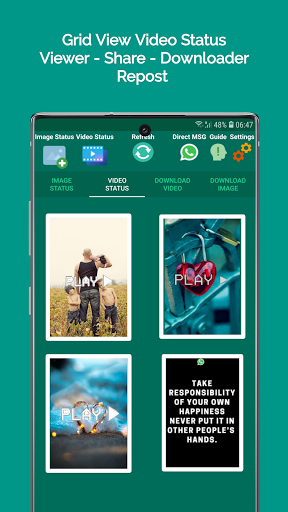 Lihat status imej rakan anda atau status video Whatsapp dan repost status itu melalui status terbina dalam aplikasi Saver & Downloader.