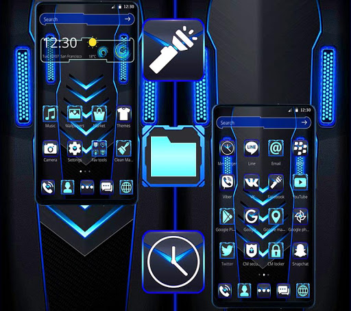 This theme is our latest free theme with blue black wallpaper and classic icons pack, designed for mobile theme fanatics. Come and download the Technology theme now, more surprises are waiting for you to discover! It makes your Android mobile stay ahead of the trend!!!