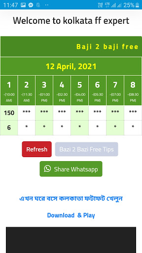 Aplikasi ini telah dibuat hanya untuk memberi idea tentang peratusan orang yang telah memainkan digit Kolkata Fatafat.