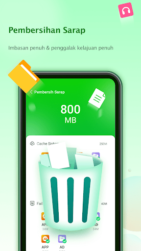 Pembersih Sarap: menyingkirkan sarap dalam memori telefon anda, menjalankan pembersihan menyeluruh, membebaskan RAM, mengoptimumkan penggunaan RAM