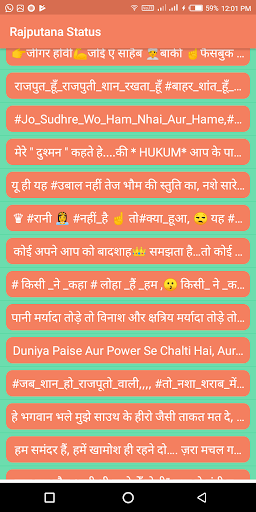 -> Impress anyone using this app which gives you immense impression on someone's mind, You can share this status with anyone by just clicking one button and impress your friends, family, neighbour, lover or anyone who loves WhatsApp Status, Facebook Status, Insta Status, Hike Status, Vigo Status etc...