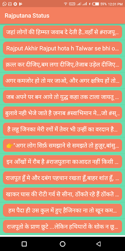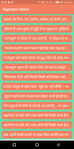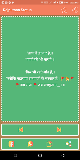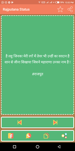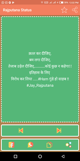 -> You can also copy text from this app and paste anywhere by long pressing button in your mobile or tablet, So using this trick you can save your favotire status also we have provided favorite option to save your favorite status for later use.