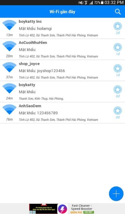 - Nhấn vào hình ngồi sao bên phải của 1 mạng wifi bạn nhìn thấy để vote hoặc bỏ vote cho mạng wifi đó.