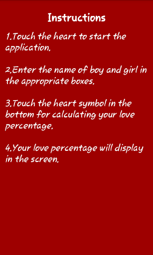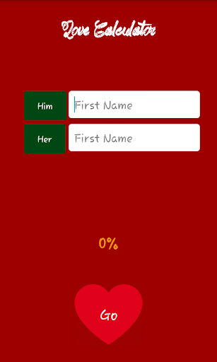 Love Calculator calculates the love affinity with your partner. You need to enter the names of you and your partner for calculation.This app could be used to test the percentage of love in partners.