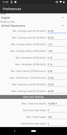 Dasar pengiraan untuk utiliti ini datang dari pelbagai teks HVAC yang berwibawa yang menyenaraikan purata penyejukan dan pemanasan nilai nilai per kaki persegi untuk banyak jenis bangunan.