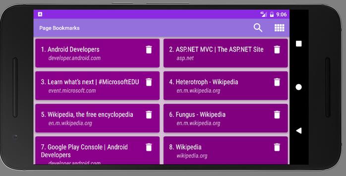 * App show a list of page bookmarks. Users can remove any bookmark from this list.