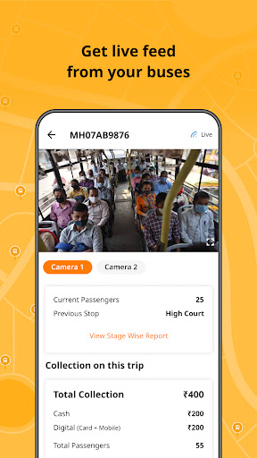 Lihat kiraan penumpang semasa dalam semua bas anda, bersama dengan data berasaskan dan deBoarding dan suapan kamera langsung. Menerima Laporan Perjalanan dan Shift End yang terkini, lengkap dengan kiraan penumpang dan butiran pengumpulan perjalanan untuk bas yang berjalan dengan mesin tiket Chalo.
