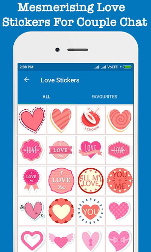 For the quick sharing the love chat stickers to social apps, You can add the funny stickers to favourite tab and will be able to share quickly.