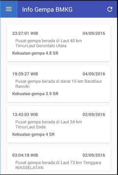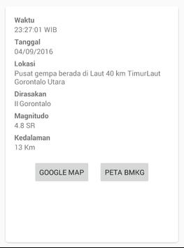 Info Gempa BMKG meupakan aplikasi untuk memudahkan para pengguna dalam mencari informasi tentang gempa yang terjadi di Indonesia . Data yang di pakai di aplikasi ini berasal dari BMKG . Fitur - Peta BMKG - Detail gempa - Peta terjadi gempa