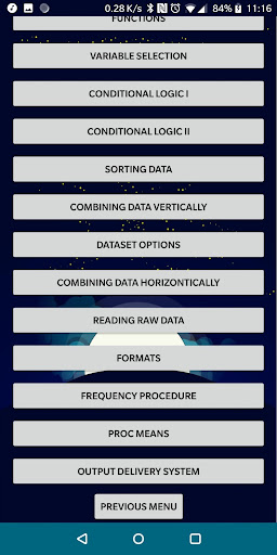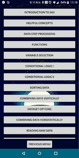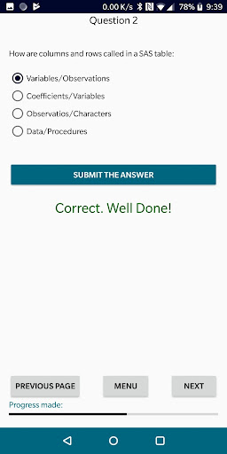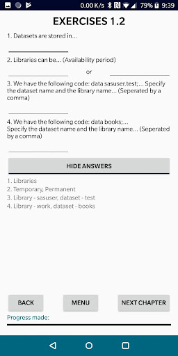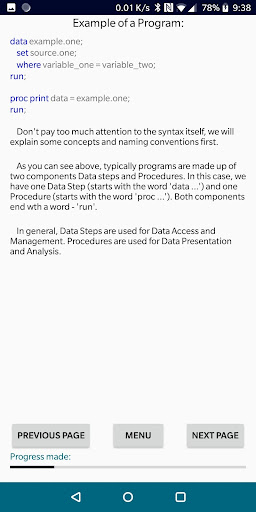 Jika anda menjawab 'Ya' kepada mana-mana di atas, maka janganlah lagi. Aplikasi ini direka untuk membantu anda mempelajari asas-asas SAS dalam masa yang singkat, pelajaran langsung. Pengetahuan anda kemudian akan diuji dalam beberapa cara yang berbeza: ujian dan latihan pengekodan.