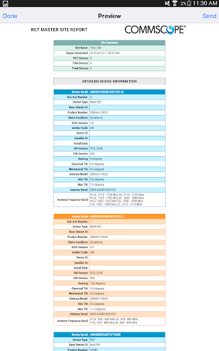 Aplikasi RET Master menghubungkan secara wayarles dengan unit induk RET untuk menyediakan keupayaan monitor, kawalan, dan diagnostik antena stesen pangkalan yang dilengkapi dengan penggerak kecondongan elektrik jauh (RET) yang mematuhi AISG, penguat smartbeam yang dipasang menara (TMAS), dan commscope smartbeam.