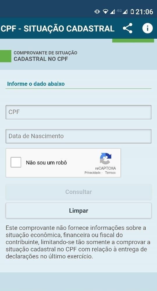 - Não possuímos nenhum vínculo com a Receita Federal do Brasil. Para maiores informações sobre a situação cadastral e imposto de renda do seu CPF, procure os canais oficiais desse órgão;