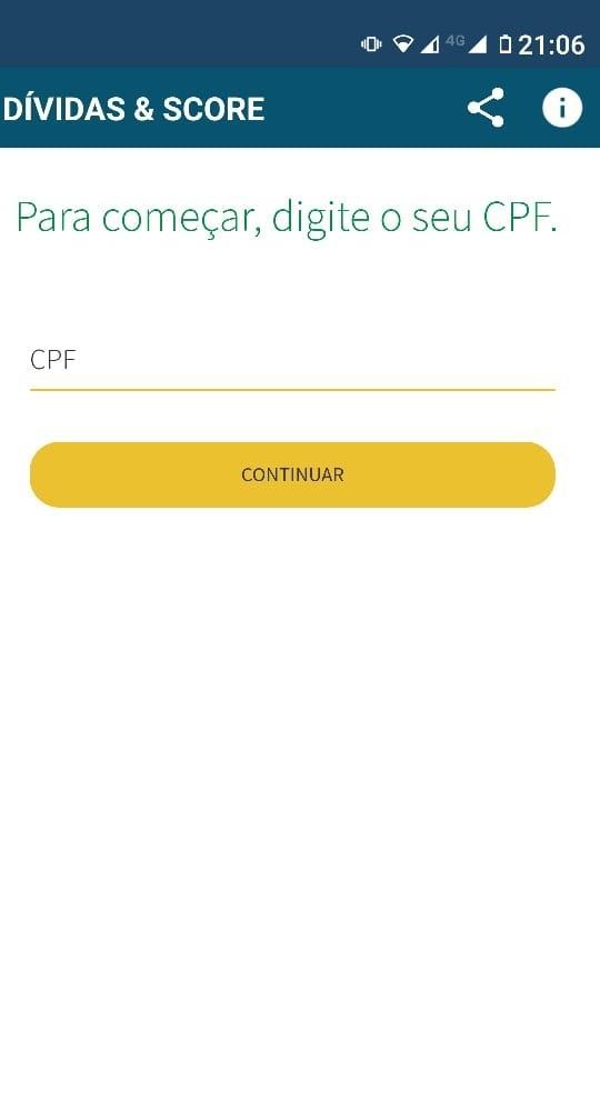 - Não coletamos nem armazenamos dados pessoais dos usuários. A finalidade desse aplicativo é reunir consultas do CPF, Score e Dívidas do cidadão em um só lugar. Não nos responsabilizamos pelos dados inseridos para se obter os resultados das consultas;