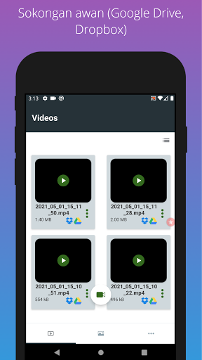 Sokongan awan (Video yang dirakam dimuat secara automatik di Google Drive, Dropbox)