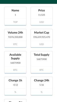 Show you details and charts (with different time periods) of a given coin. Also, you can zoom in the chart and get the price in a certain date by touching it.