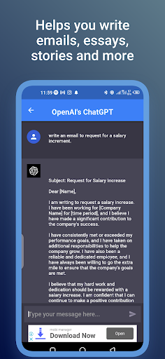 Secara keseluruhan, aplikasi ini menawarkan cara yang maju dan mudah untuk berinteraksi dengan sistem AI.Aplikasi ini mesra pengguna dan intuitif, menjadikannya mudah bagi anda untuk berinteraksi dengan sistem AI secara semulajadi, perbualan.Muat turun aplikasi hari ini dan mula mempunyai perbualan dengan sistem AI on-the-go!Sama ada anda memerlukan bantuan dengan tugas tertentu, ingin mengadakan perbualan santai, atau hanya ingin meningkatkan kemahiran bahasa bertulis anda, aplikasinya adalah sahabat yang sempurna untuk sesiapa sahaja yang ingin berinteraksi dengan sistem AI yang canggih semasa on-the-go.