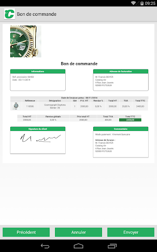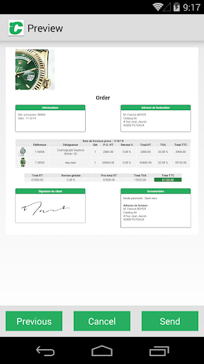 All the information required to create quotations or purchase orders is available offline. Check the prices, the stocks, current sales, apply discounts before finalizing the purchase order with the customer signature.