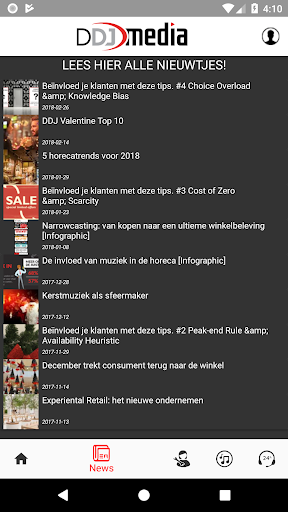 Vraag eenvoudig tracks aan, bekijk de handleiding en FAQ’s passend bij jouw All-in-One muzieksysteem, lees onze nieuwtjes & blogs en deel je foto’s. Heb je nog vragen over muziek of klantbeleving binnen je zaak? Dan neem je via de app zo contact met ons op.