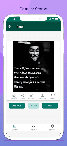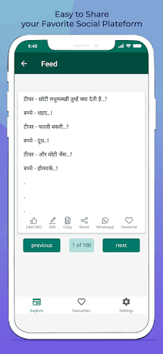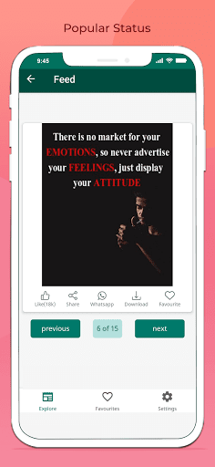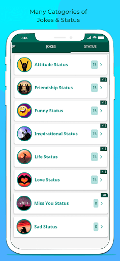 Terdapat lebih daripada 1000 status dan sebut harga yang anda boleh membaca, berkongsi dan membawa keluar dari kami dengan kami Aplikasi yang cepat dan hebat. Akses jenaka dari koleksi jenaka yang besar yang disusun dengan bijak dalam beberapa kategori. Ia terasa sangat mengagumkan semasa menggunakan aplikasi Parlor, memilih dari beberapa kategori seperti sikap yang menakjubkan, sikap, hari jadi, sejuk, dating, lucu, kehidupan, kegagalan, kebebasan, persahabatan dan lain-lain.