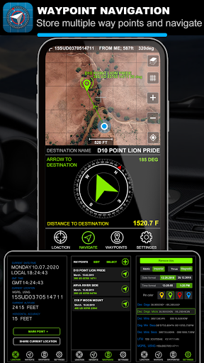 Way Points offer the user a way to customize and name the locations they choose to "waypoint" on. They can use their current location or drag and drop a pin on a map. Simply swipe right from the "Add" screen to access Way Points.