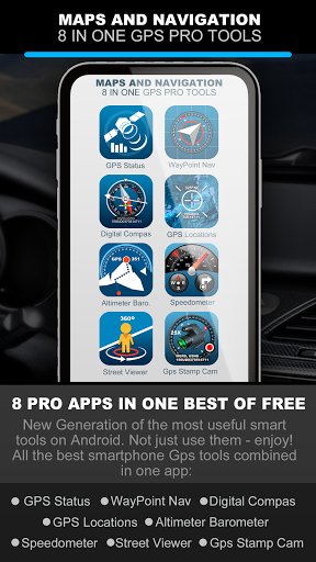 New generation of the most useful smart tools on Android. Not just use them - enjoy! All the best smart phone tools combined in one app: Compass, GPS Test, Street View, Speedometer, Waypoint Navigation, Altimeter, GPS Locations, GPS